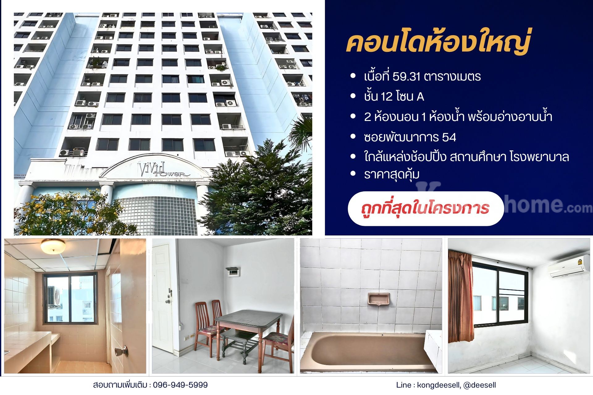 ขายคอนโดถูก ห้องใหญ่ 59.31 ตร.ม.คอนโดวิวิดทาวเวอร์ พัฒนาการ 54 (Vivid tower)