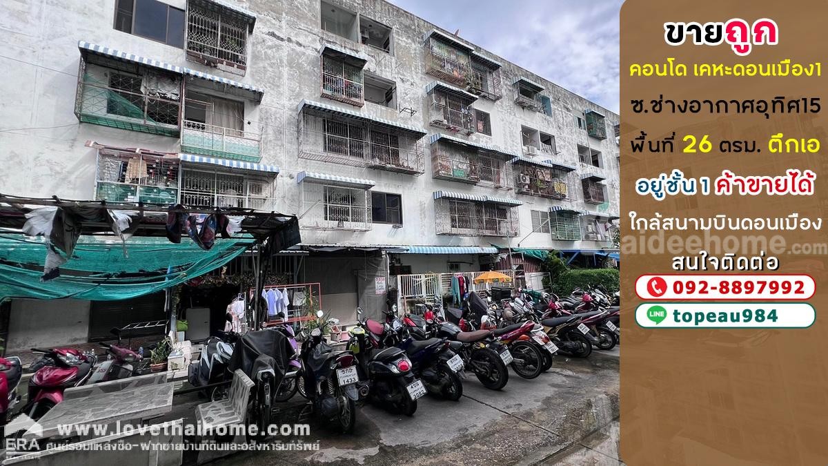 ขายคอนโด เคหะดอนเมือง1 ถนนช่างอากาศอุทิศ15 พื้นที่ 26 ตรม. อยู่ชั้น1 อาคารเอ ค้าขายได้ ใกล้สนามบินดอนเมือง