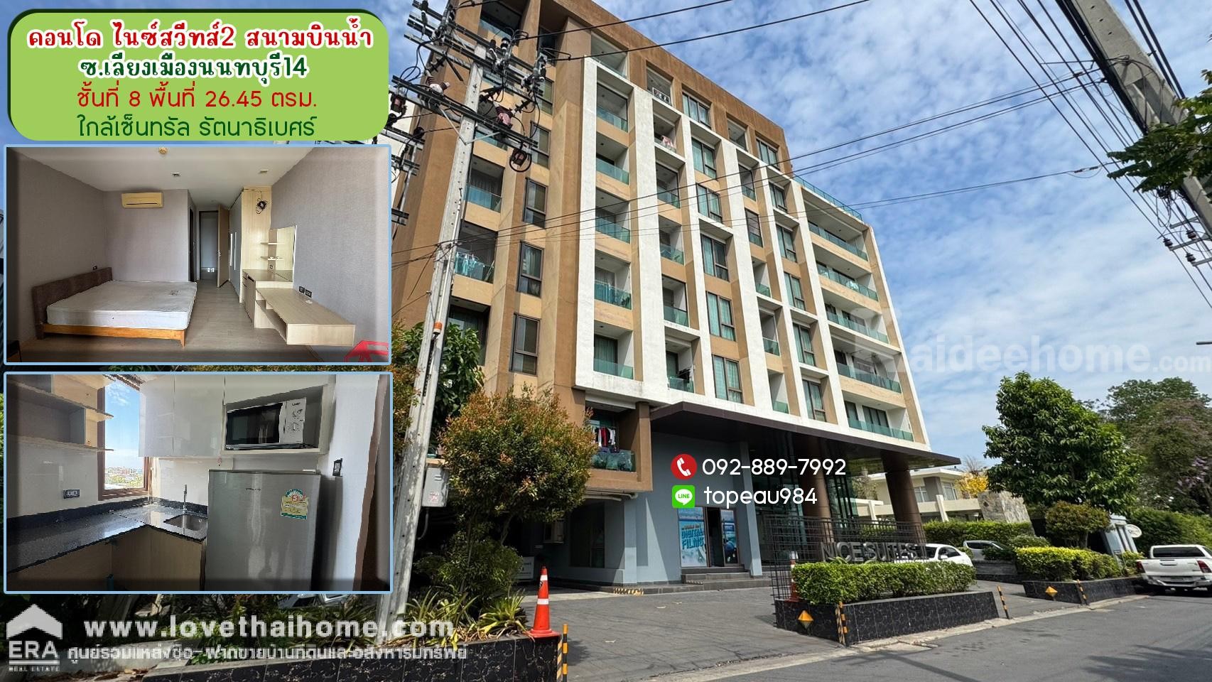 – คอนโด ไนซ์สวีทส์ 2 สนามบินน้ำ พื้นที่ 26.48 ตรม. อยู่ชั้นที่ 8 ซ.เลี่ยงเมืองนนทบุรี14 ถ.สนามบินน้ำ