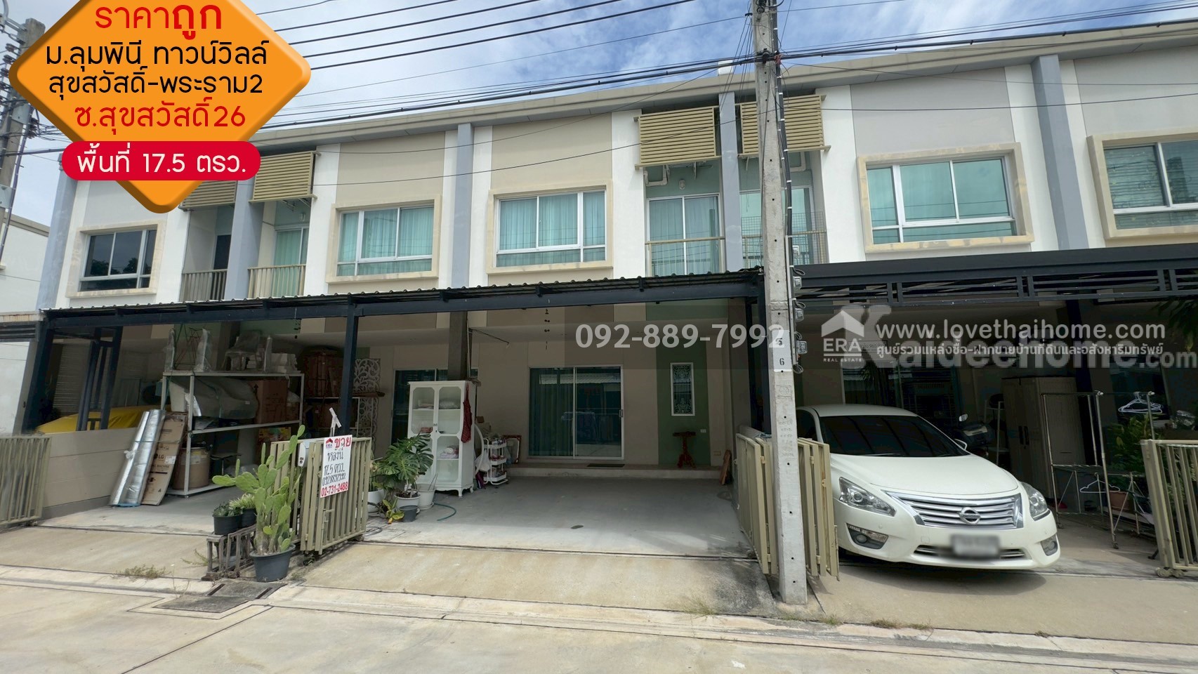 ขายทาวน์เฮ้าส์ 2 ชั้น หมู่บ้านลุมพินี ทาวน์วิลล์ สุขสวัสดิ์-พระราม2 ถนนสุขสวัสดิ์26 พื้นที่ 17.5 ตรว. ราคาถูก ใกล้บิ๊กซี บางปะกอก