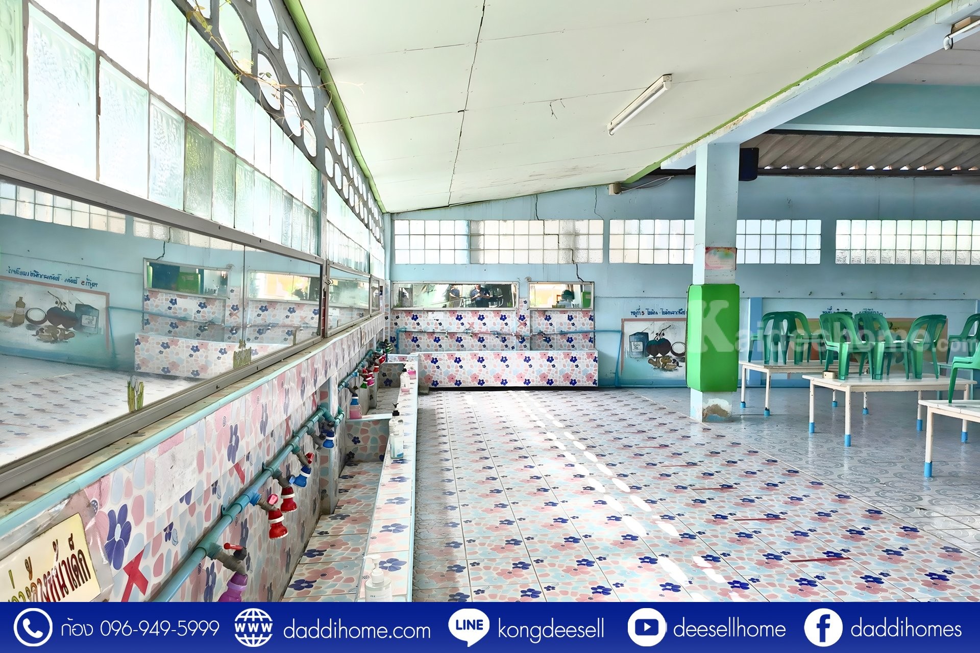 – อาคารชั้นล่างประกอบด้วยห้องขนาด 6×8 เมตร จำนวน 7 ห้อง และห้องน้ำรวมขนาดใหญ่ จำนวน 1 ห้อง