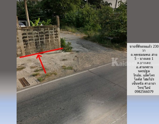 ขายที่ดินถมแล้ว 230 วา ถ.พุทธมณฑล สาย 5 – บางเตย 1 ต.บางเตย อ.สามพราน นครปฐม