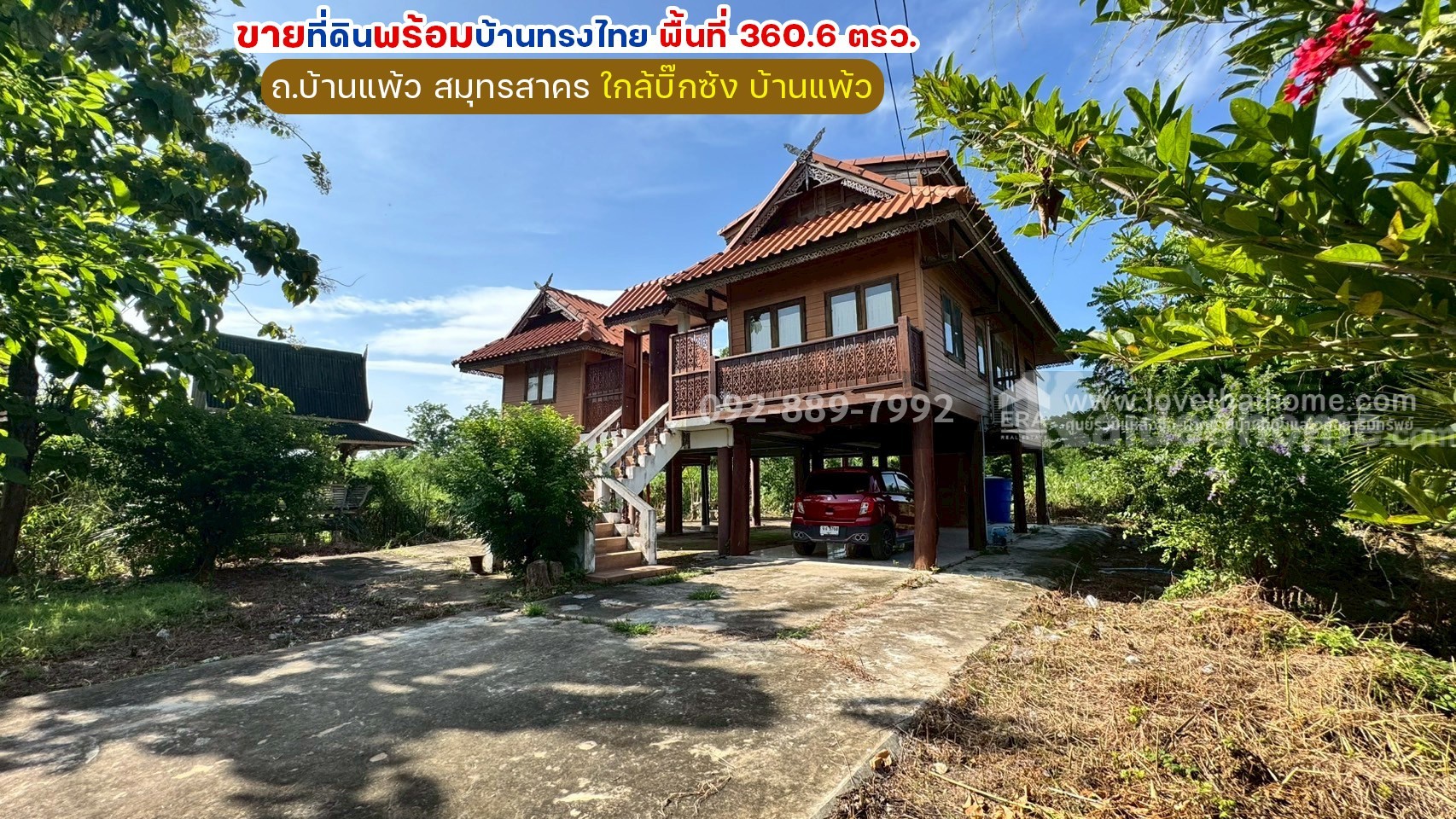 ขายที่ดินพร้อมบ้านทรงไทย ถนนบ้านแพ้ว สมุทรสาคร พื้นที่ 360.6 ตรว. ใกล้บิ๊กซ้ง บ้านแพ้ว