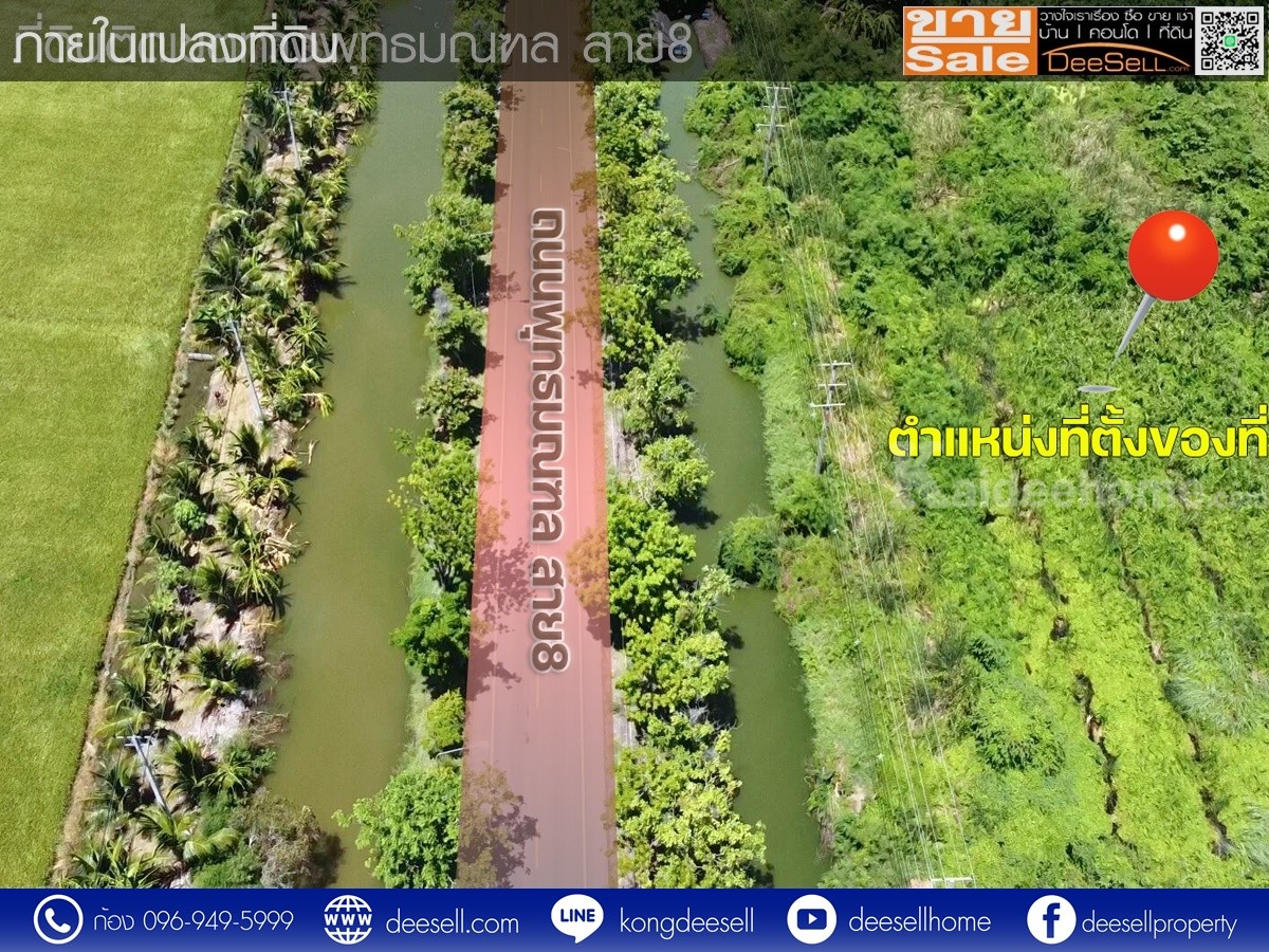 ขายที่ดินนครปฐม ตำบลขุนแก้ว นครชัยศรี ติดถนนพุทธมณฑลสาย 8 เนื้อที่ 9-2-88.7 ไร่ (3,888.7 ตารางวา) รูปแปลงสวย พื้นที่สีเขียว เหมาะลงทุนทำโครงการแนวราบ ทำเลดี