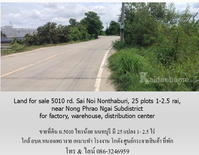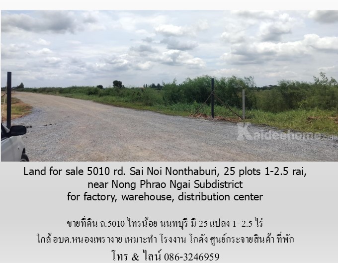 Land for sale 5010 rd. Sai Noi Nonthaburi, 25 plots 1-2.5 rai, near Nong Phrao Ngai Subdistrict for factory, warehouse, distribution center