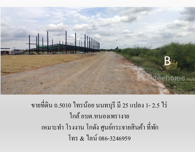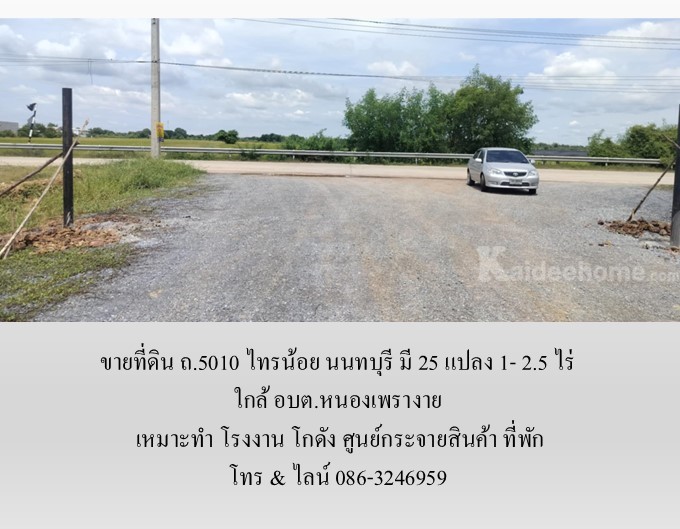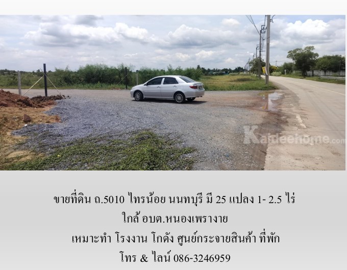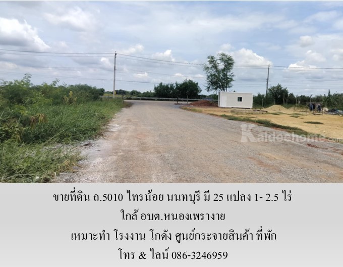 ขายที่ดิน ถ.5010 ไทรน้อย นนทบุรี มี 25 แปลง 1- 2.5 ไร่ เหมาะทำ โรงงาน โกดัง ศูนย์กระจายสินค้า ที่พัก ใกล้ อบต.หนองเพรางาย