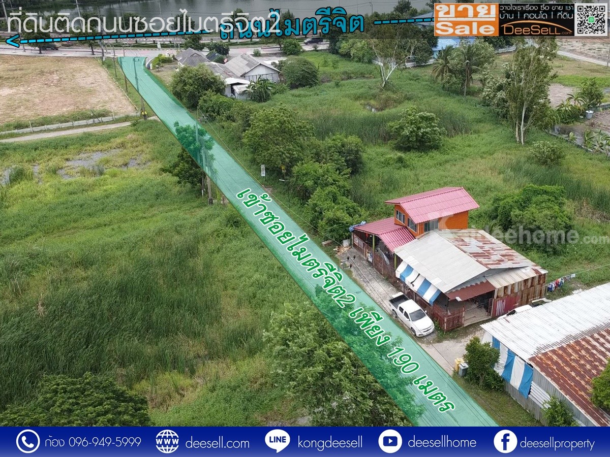 – ด้านหน้าแปลงที่ดินติดถนนคอนกรีตสภาพดีซอยไมตรีจิต 2 กว้างประมาณ 6 เมตร