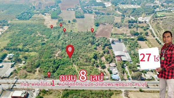 1.หน้าแปลงติดถนน 8 เลน เส้น หน้าวัดถ้ำกระบอก ถนนพหลโยธินเส้นสระบุรี อำเภอพระพุทธบาท ลพบุรี-สระบุรี-กรุงเทพ