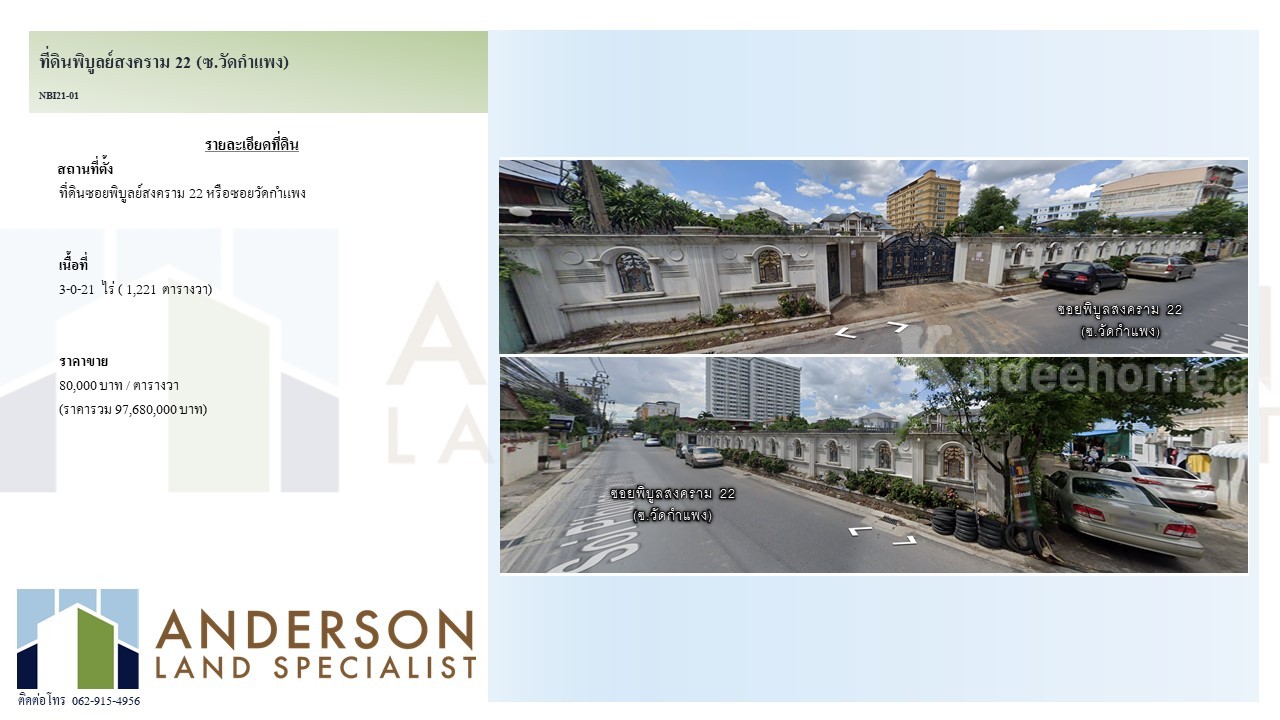 ขายบ้านพร้อมที่ดิน ซอยพิบูลย์สงคราม 22 หรือซอยวัดกำแพง เนื้อที่ 3-0-21ไร่ (1,221 ตารางวา)