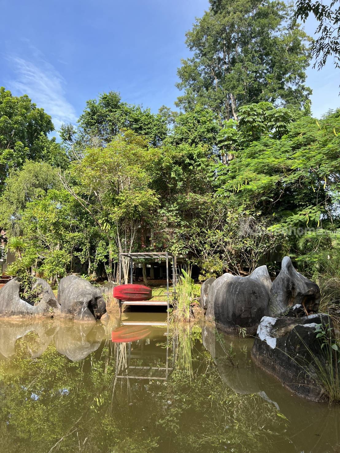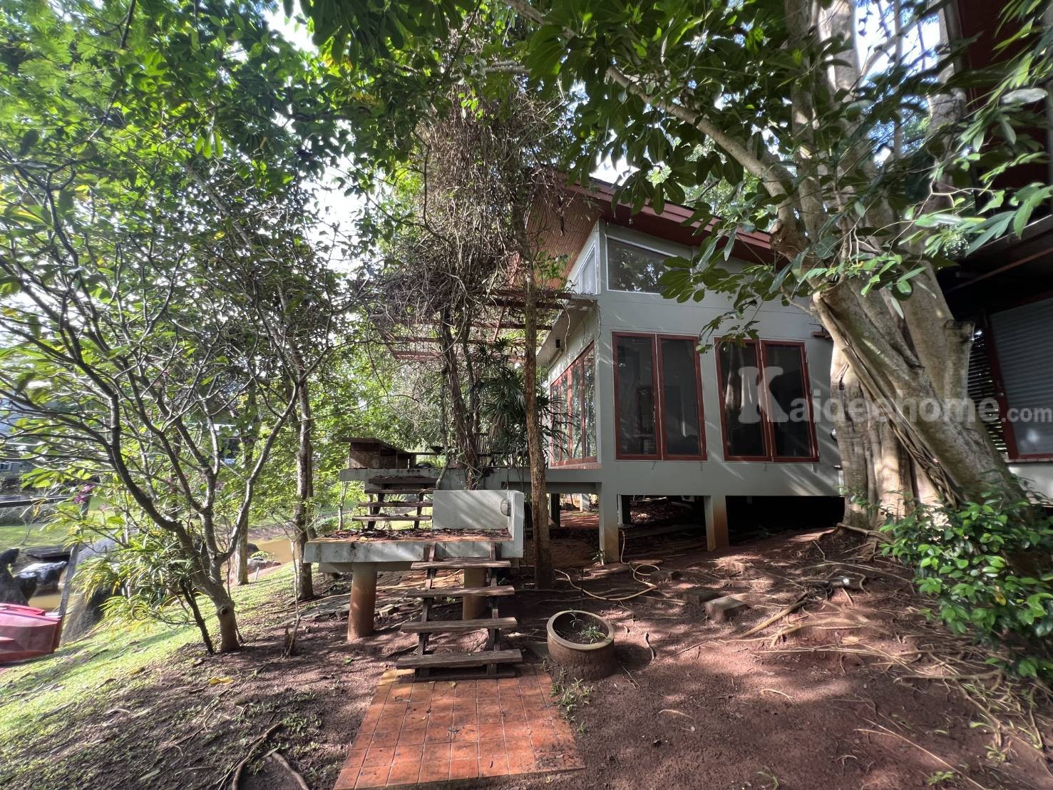 **มีต้นไม้ใหญ่กลางบ้าน ระเบียงริมน้ำ พายเรือเล่นชิวๆ