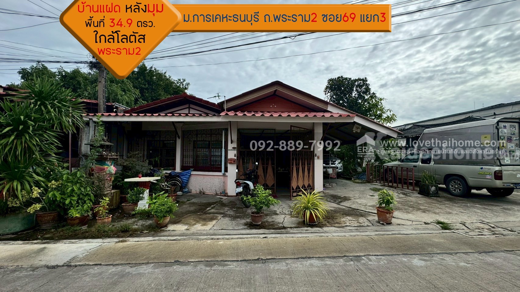 ขายบ้านแฝดชั้นเดียวถนนพระราม2 ซอย69 แยก3 หมู่บ้านการเคหะธนบุรี พื้นที่ 34.9 ตรว. ขาย 3.2 ล้านบาท บ้านหลังมุม พร้อมอยู่ ใกล้โลตัส พระราม2