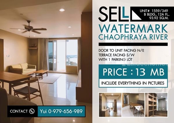 ขายพร้อมผู้เช่า คอนโด วอร์เตอร์มาร์ค เจ้าพระยา ริเวอร์ ขนาด 94 ตรม. ชั้น 12A ตึก B โทร. 0979.656.989 เจ้าของขายเอง pet-friendly เลี้ยงน้องหมาน้องแมวขนาดเล็กได้