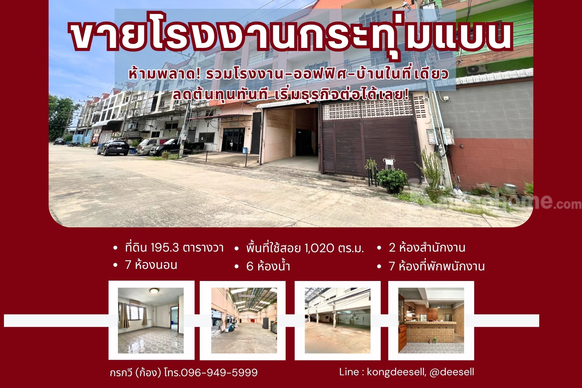 ขายโรงงานกระทุ่มแบน พร้อมออฟฟิศ 2 อาคารและบ้านพักคนงาน 7 ห้อง หมดกังวลเรื่องโครงสร้างพื้นแข็งแรง รองรับเครื่องจักรหนัก พร้อมต่อยอดธุรกิจ ราคาคุ้มที่สุดในย่านนี้