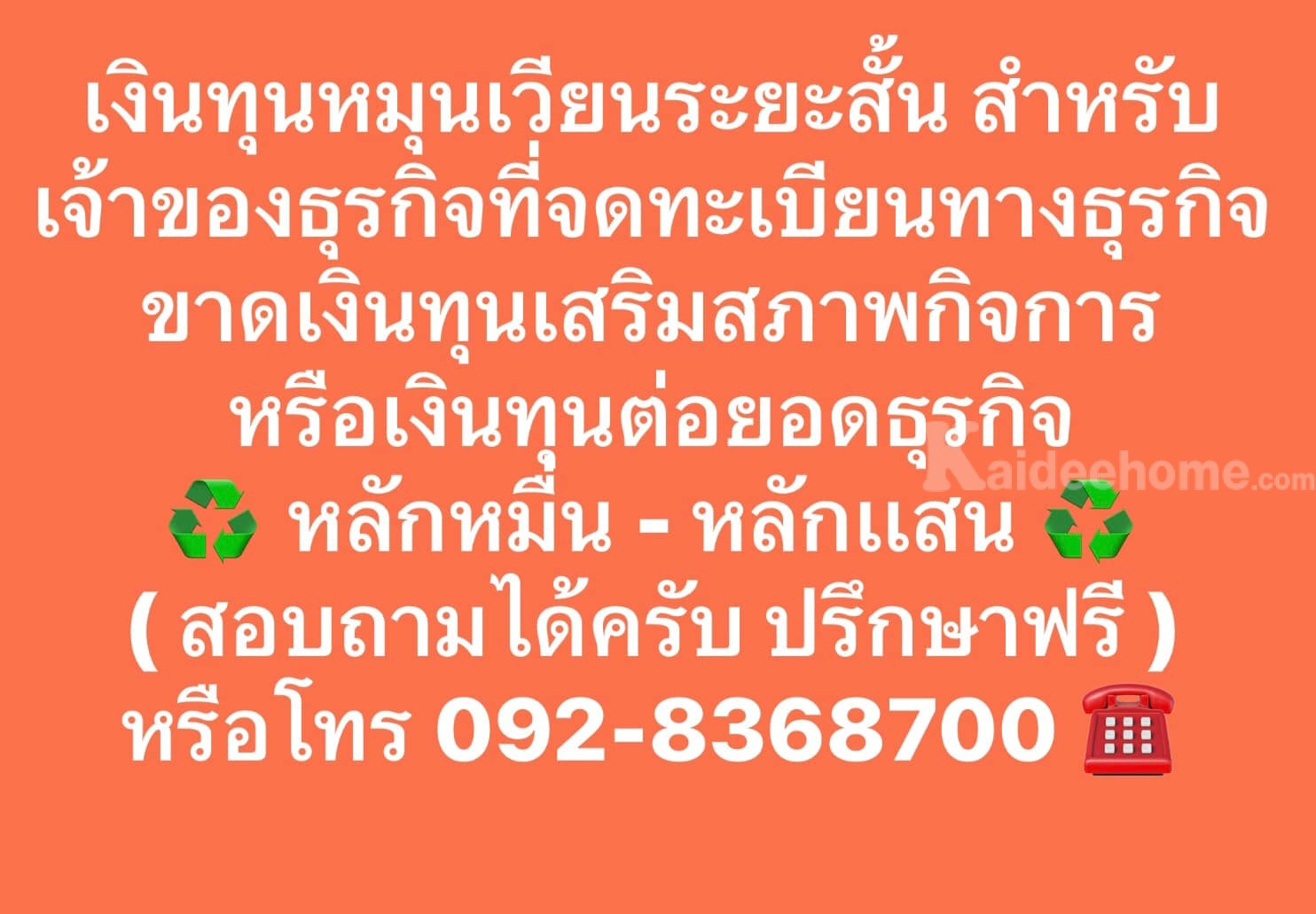 ขาดเงินทุนเสริมสภาพธุรกิจ โทร 092-8368700 #ดอกเบี้ยต่ำ