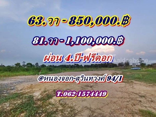 ที่ดินสวยถมสูงแล้วผ่อนได้ 4.ปี.ฟรีดอกโซนหนองจอก-สุวินทวงค์ 94/1.-T.062-1574449