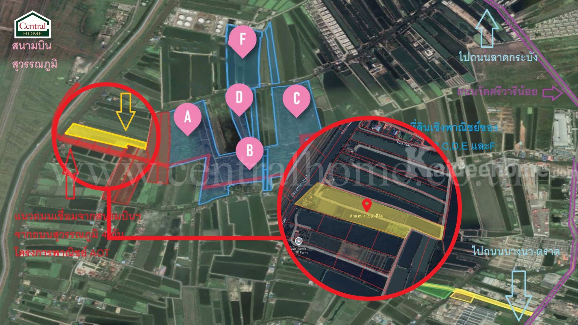 – ติดทางเชื่อมเข้าสนามบินสุวรรณภูมิ ตรงข้ามแผนโครงการ Airport City