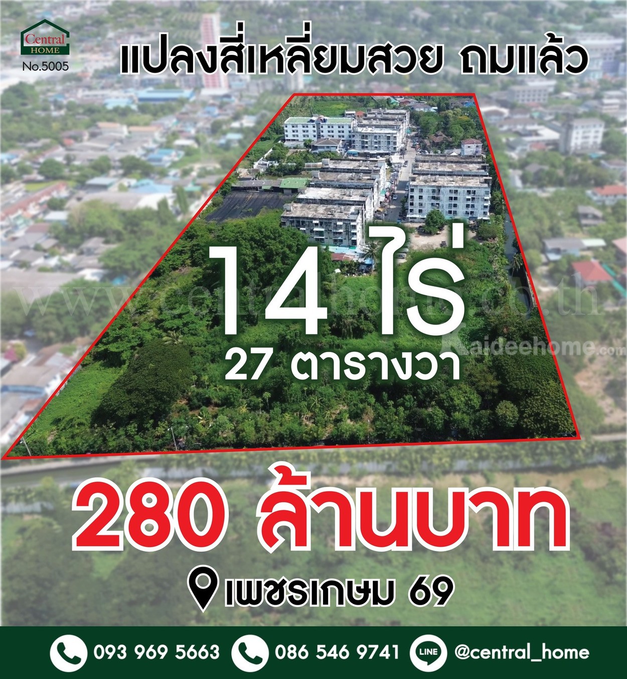 ที่ดินแปลงสี่เหลี่ยมสวย ถมแล้ว 14-0-27 ไร่ เพชรเกษม 69