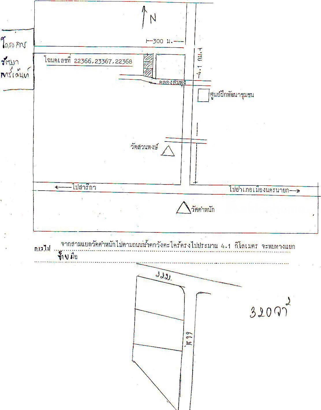 ที่ดินให้เช่าใกล้ถนนใหญ่ 320 ตรว. ทางไปน้ำตกสาริกา อำเภอเมือง นครนายก