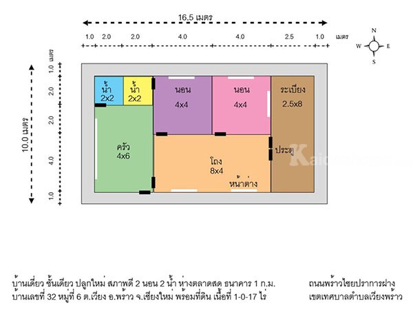 . ขนาดบ้าน 116 ตรม. กว้าง 8 ม. x ยาว 14.5 ม. บ้านเลขที่ 32 หมู่ที่ 6 , ต.เวียง, อ.พร้าว , จ.เชียงใหม่ 50190 ,