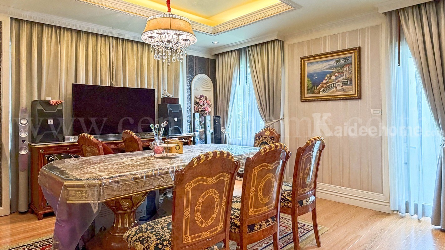 – 4 ห้องนอน, 5 ห้องน้ำ, 1 ห้องรับแขก, 1 ห้องรับประทานอาหาร, 1 ห้องครัวไทย, 1 ห้องครัวฝรั่ง, 1 ห้องแม่บ้าน, 2 ที่จอดรถ