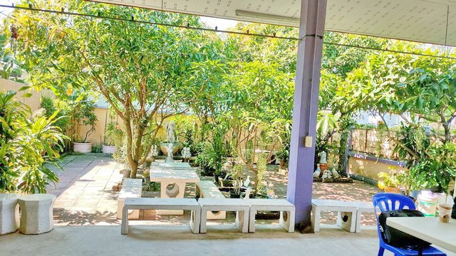 - พื้นที่บ้านกว้างขวาง โปร่งสบาย ไม้ดอก ไม้ใบร่มรื่น เย็นตา