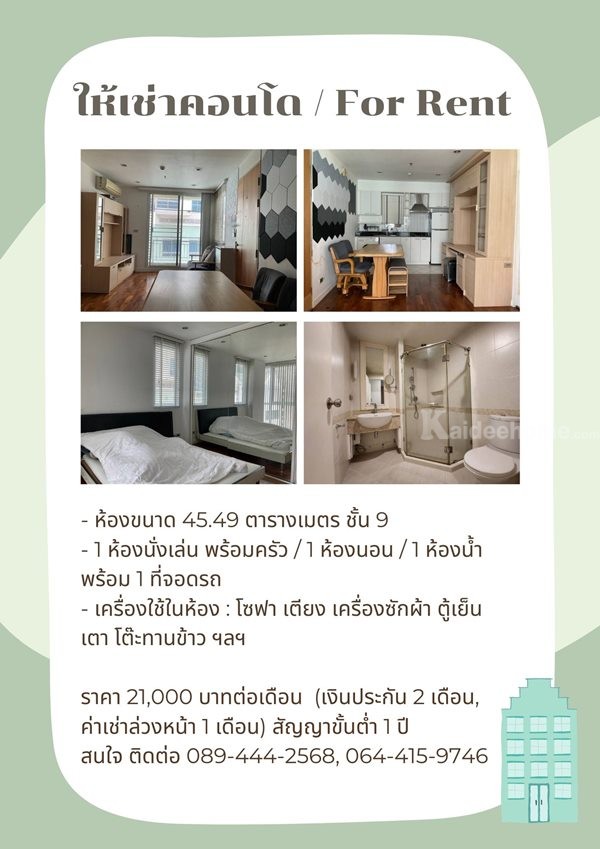 – ห้องขนาด 45.49 ตารางเมตร ชั้น 9