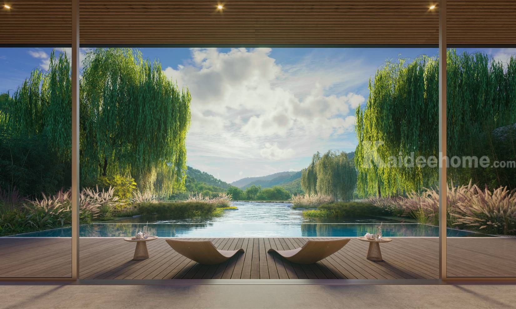》วิลล่าออกแบบให้มีความกลมกลืนกับภูมิทัศน์ธรรมชาติของหุบเขาและทะเลสาบ คำนึงถึงความเงียบสงบเป็นส่วนตัวโดยเน้นการดีไซน์ที่เปิดรับธรรมชาติด้านนอก