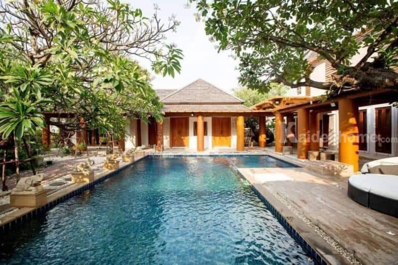 **สระว่ายน้ำกลางบ้าน มีต้นไม้ขนาดใหญ่ ให้ความร่มรื่น