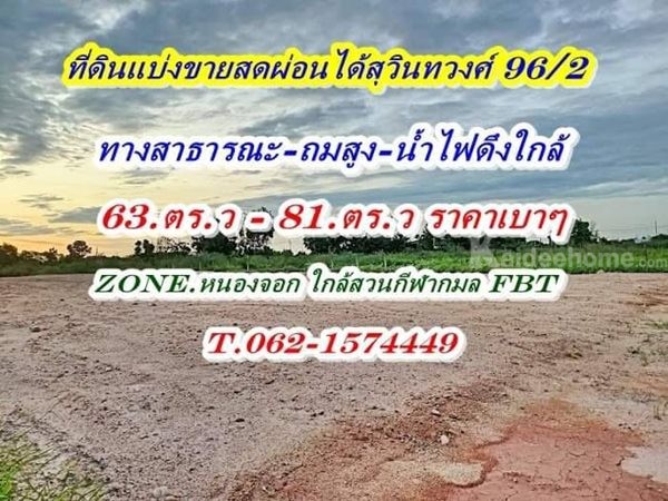 สดผ่อนได้ที่ดินแบ่งขายแปลงเล็กถมแล้วสุวินทวงศ์ 96 /2 T.062-1574449