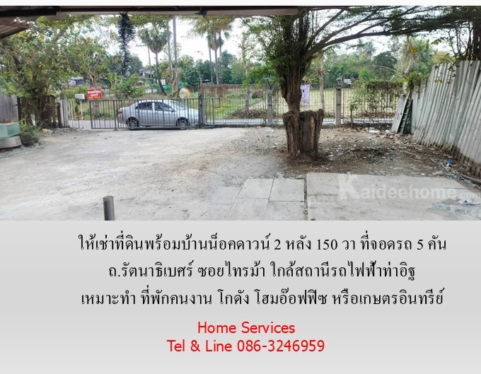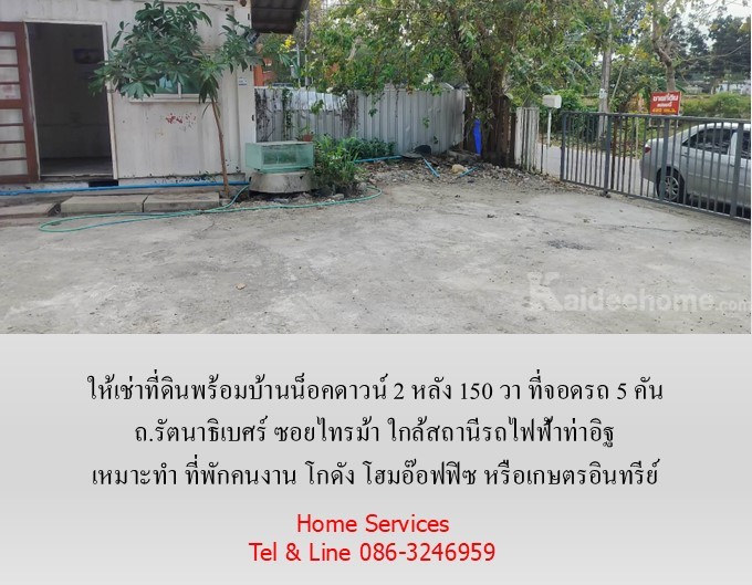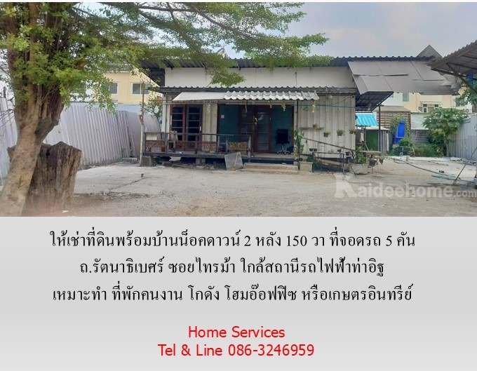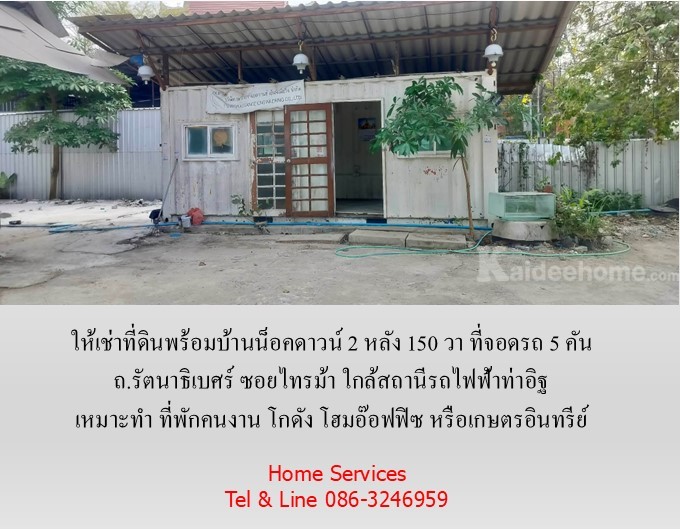ให้เช่าที่ดินพร้อมบ้านน็อคดาวน์ 150 วา ถ.รัตนาธิเบศร์ ซอยไทรม้า เหมาะทำ โฮมอ๊อฟฟิซ โกดัง ที่พักคนงาน หรือเกษตรอินทรีย์ ใกล้สถานีรถไฟฟ้าท่าอิฐ
