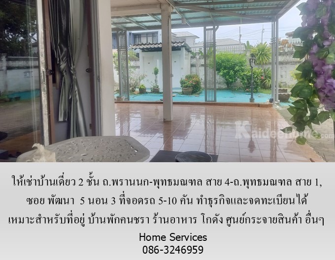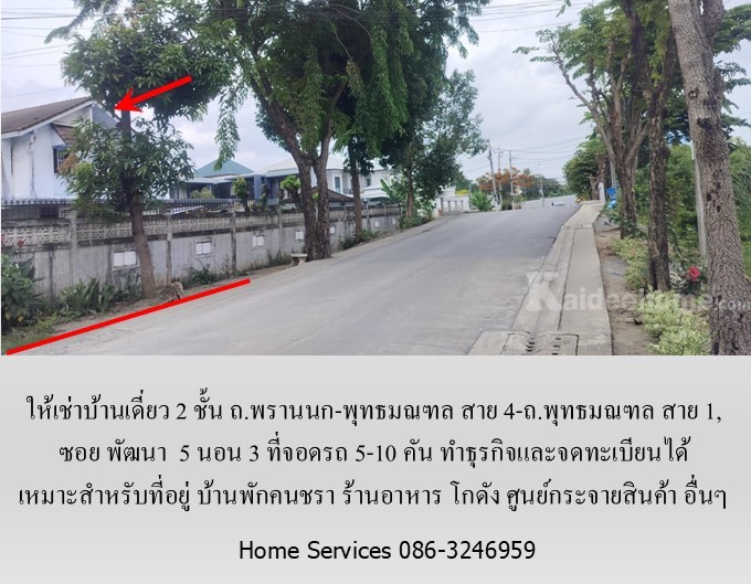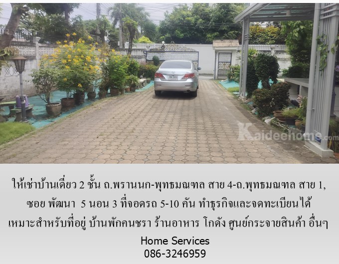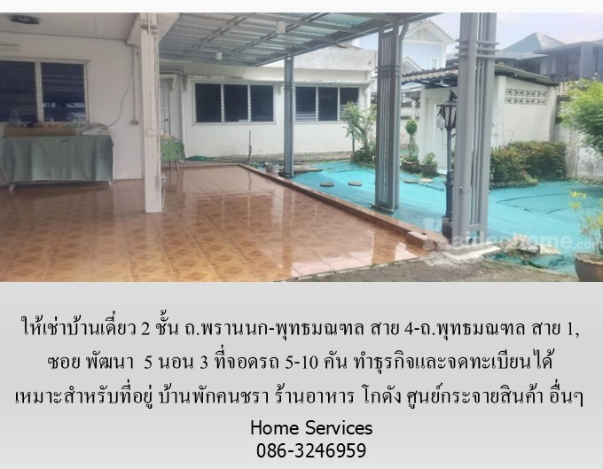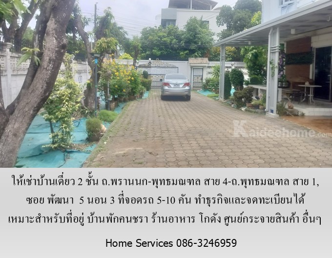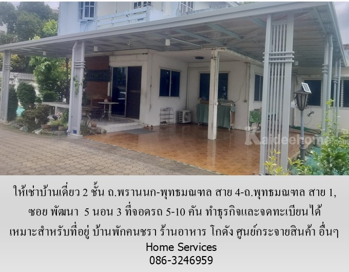 ให้เช่าบ้านเดี่ยว 2 ชั้น ซอย พัฒนา ถ.พรานนก-พุทธมณฑล สาย 4-ถ.พุทธมณฑล สาย 1, 5 นอน 3 ที่จอดรถ 5-10 คัน ทำธุรกิจและจดทะเบียนได้ เหมาะสำหรับที่อยู่ บ้านดูแลคนชรา ร้านอาหาร โกดัง ศูนย์กระจายสินค้า