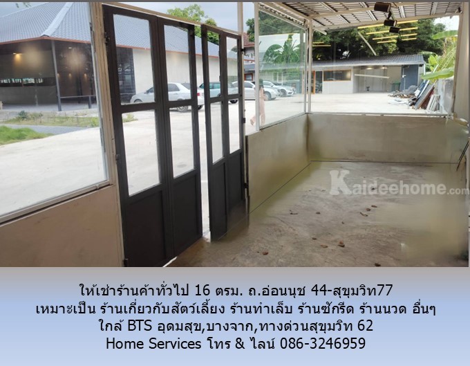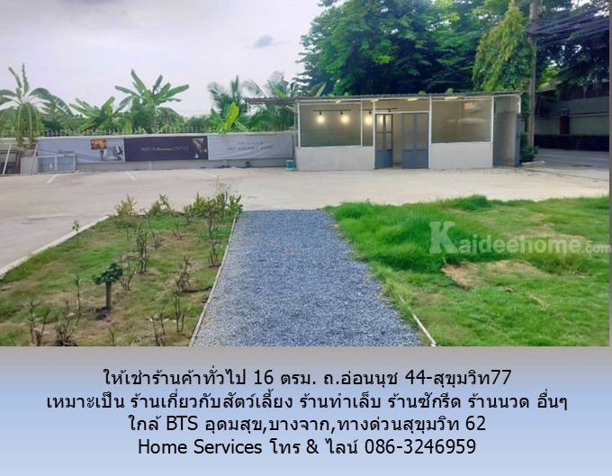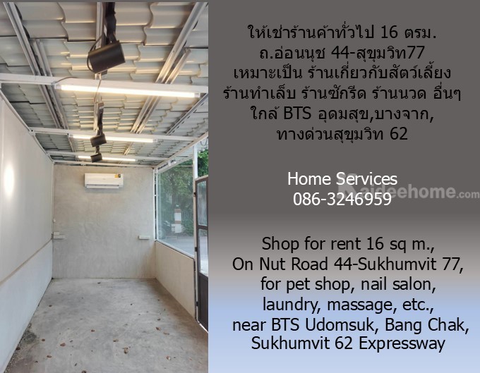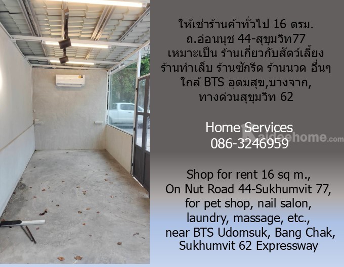 ให้เช่าร้านค้าทั่วไป 16 ตรม. ถ.อ่อนนุช 44-สุขุมวิท77 เหมาะเป็น ร้านเกี่ยวกับสัตว์เลี้ยง ร้านเสริมสวย ร้านทำเล็บ ร้านสัก ร้านซักรีด ร้านนวด อื่นๆ ใกล้ BTS อุดมสุข,บางจาก,ทางด่วนสุขุมวิท 62