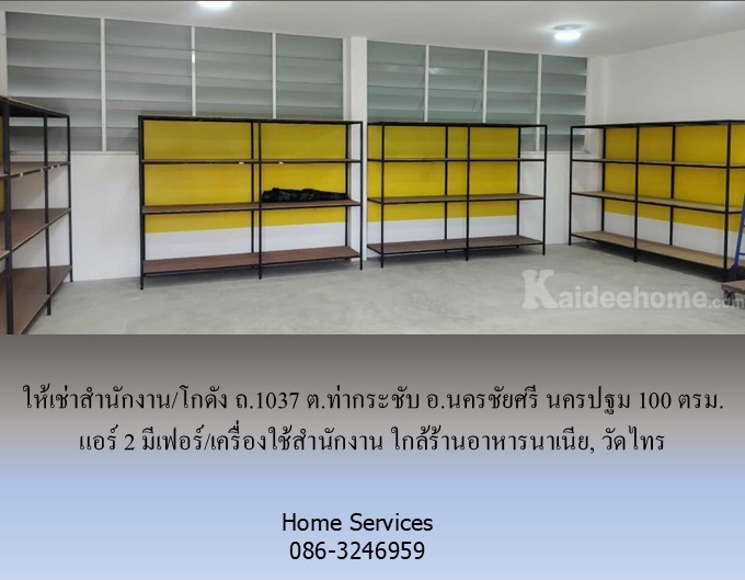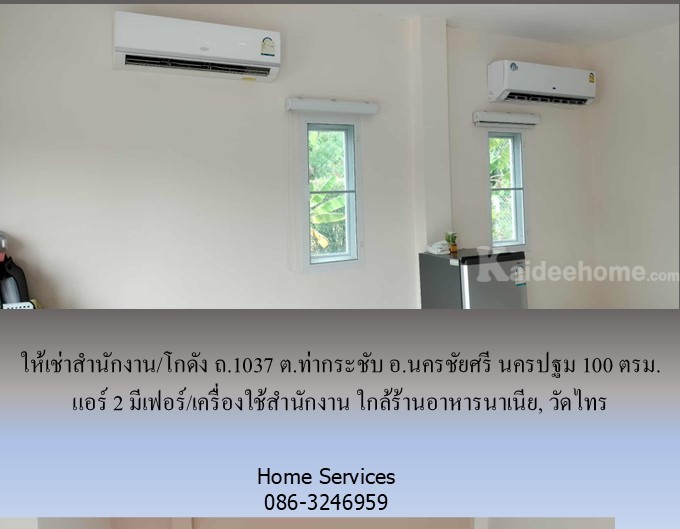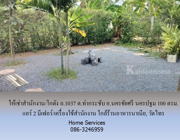 ให้เช่าสำนักงาน/โกดัง ถ.1037 ต.ท่ากระชับ อ.นครชัยศรี นครปฐม 100 ตรม. แอร์ 2 มีเฟอร์/เครื่องใช้สำนักงาน ใกล้ร้านอาหารนาเนีย, วัดไทร
