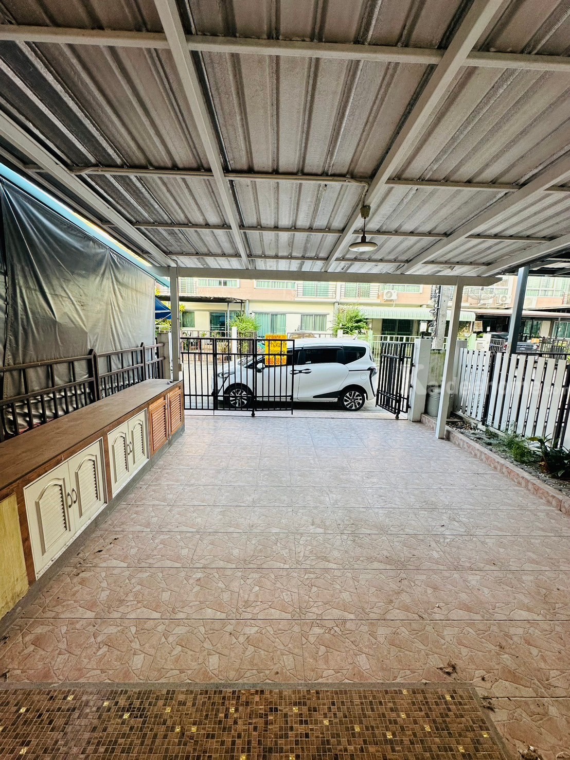- ปรับปรุงเพิ่มเติม: ต่อเติมหลังคาทั้งที่จอดรถและครัวด้านหลัง