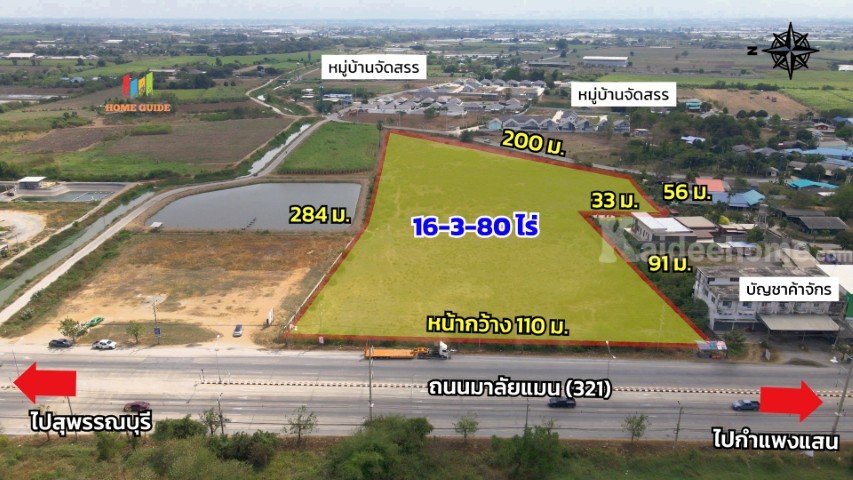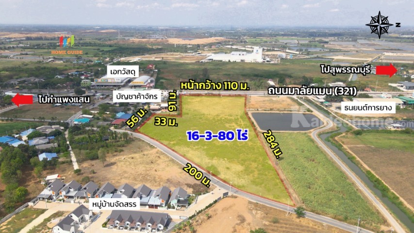 🎯ที่ตั้งที่ดิน: ถ.มาลัยแมน (ทางหลวง 321) ต.สระสี่มุม อ.กำแพงแสน จ.นครปฐม 73140