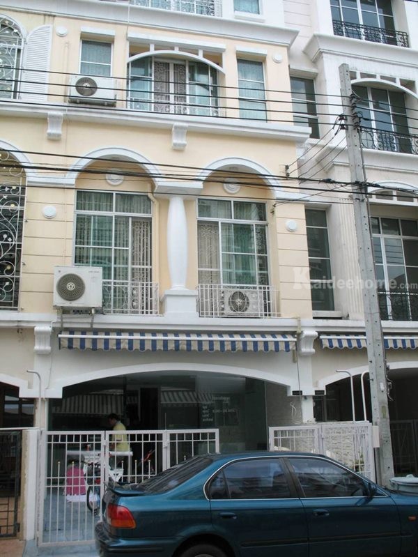 In front of the village, there are plenty of food and supplies, 7-11, Top, MRT Lat Phrao (blue) and BTS (yellow) only 100 meters away, restaurants, banks, in front of the village there is a bus stop